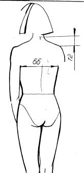 пересечения линии талии с позвоночником до плечевой точки.