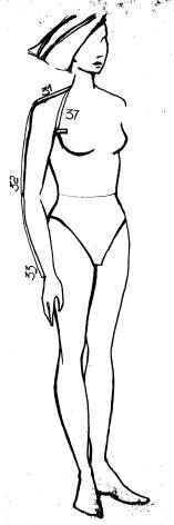 31. Ширина плеча - измеряют от точки основания шеи до плечевой