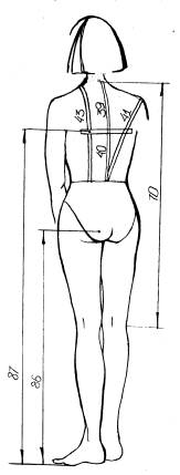 должна проходить сзади от линии талии до точки основания шеи параллельно