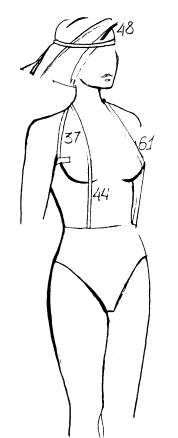 61. Расстояние от точки основания шеи до линии талии спереди
