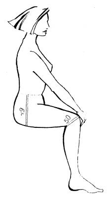 поверхности ноги от промежности до пола при слегка раздвинутых ногах.