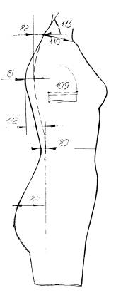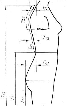 78. Глубина талии 1 - измеряют по горизонтали расстояние от