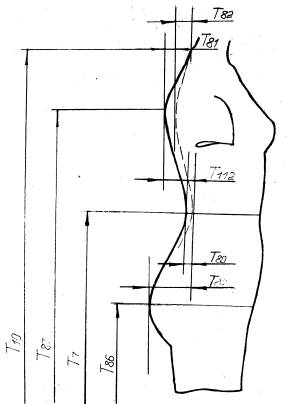 позвонка до линии обхватов сзади груди 1 с учетом выступа лопаток (через